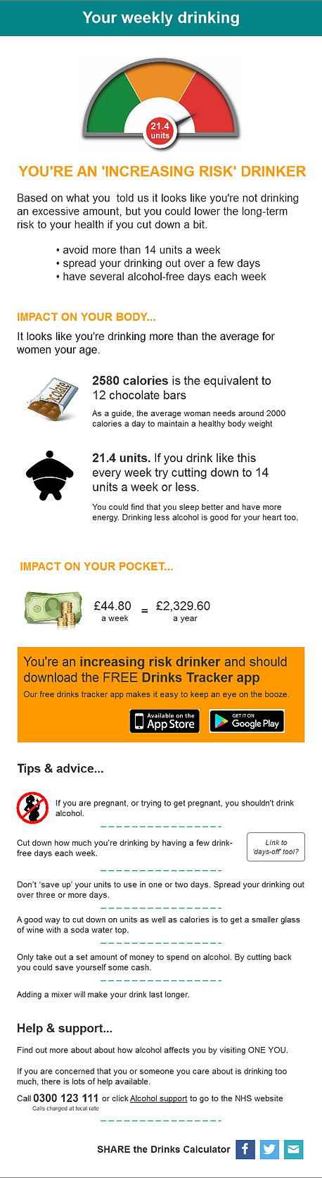 Public Health England (PHE) had created a drinks checker app to help people become aware of how much alcohol they were drinking. They wanted an online calculator tool to drive people to download the app as part of the One You campaign.